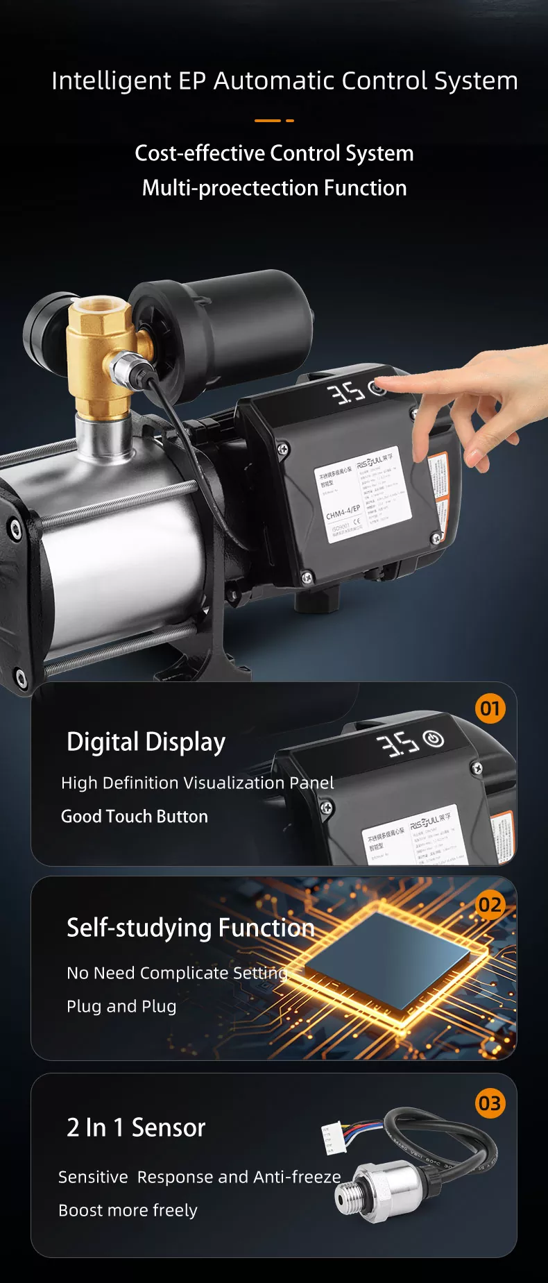 CHM2-3/EP | 0.37 | 4.5 | 29.5 | 2m³/h@24m | 3 | 304x174x255 | 9.4 |