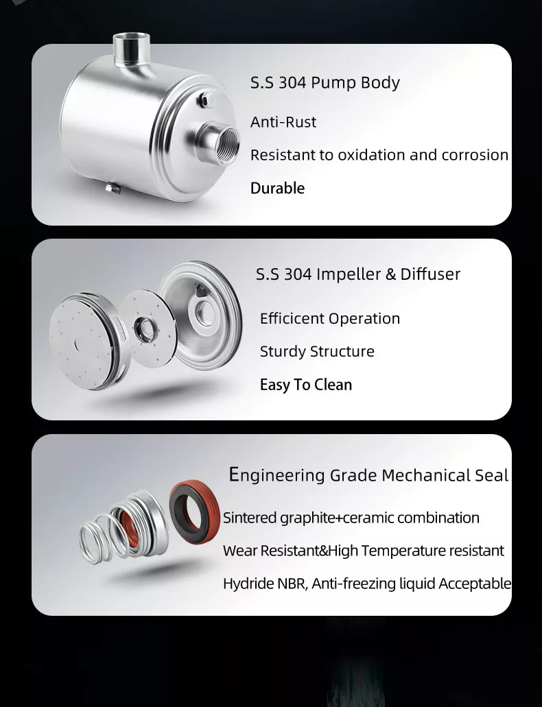 3. Aplikasi Serbaguna: Apakah Anda perlu meningkatkan tekanan air di gedung, sistem irigasi, atau proses industri, pompa ini cukup serbaguna untuk memenuhi berbagai kebutuhan dengan mudah.