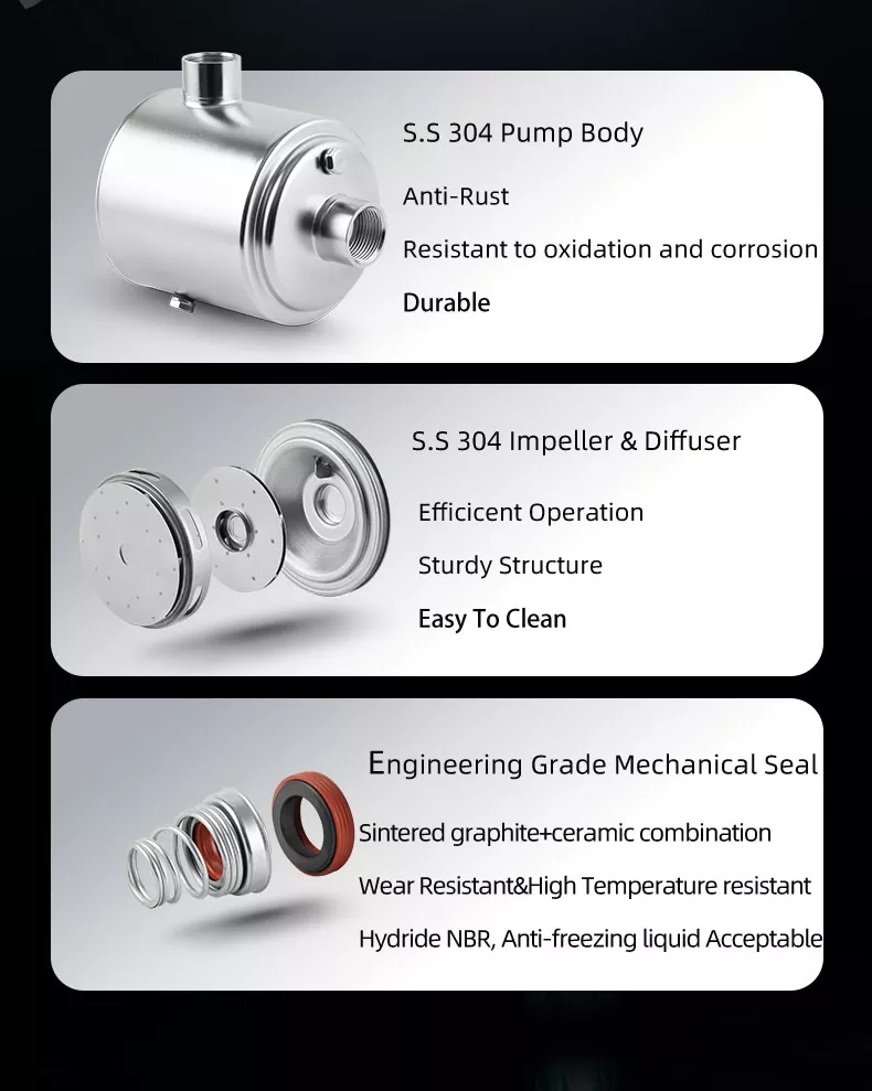Fitur yang ramah pengguna: Pompa multistage tekanan tinggi yang cerdas hadir dengan kontrol tekanan elecotronical pintar yang ramah pengguna, memungkinkan pengoperasian dan pemantauan yang mudah. Ucapkan selamat tinggal pada pengaturan yang rumit - pompa ini dirancang untuk merampingkan proses pemompaan Anda.
